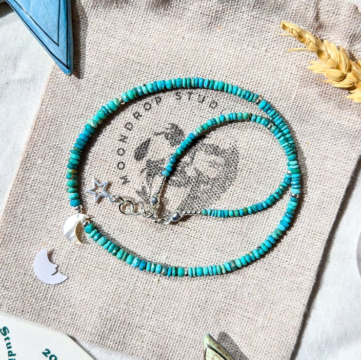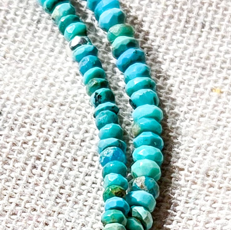 This lovely one-of-a-kind necklace is handmade with dreamy, hand-faceted Turquoise gemstone beads, each one slightly different with natural textures and shades of blue and green.