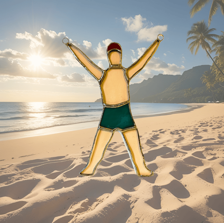 Perfectly complementing our female swimming range, these stained glass ornaments make a delightful pair for any home. Each piece is meticulously crafted with Tiffany Style copper foiling, ensuring timeless quality and style.