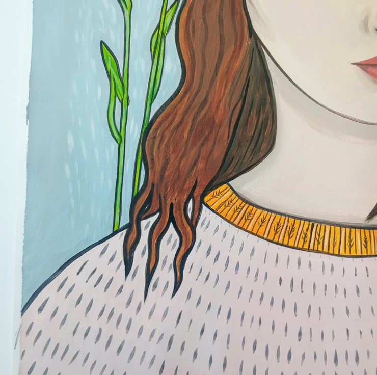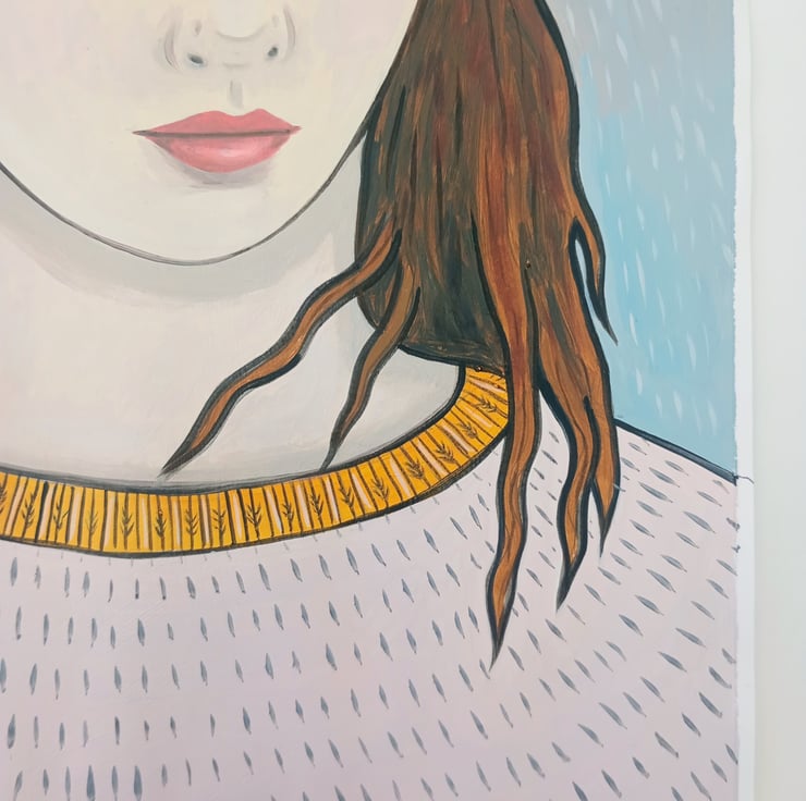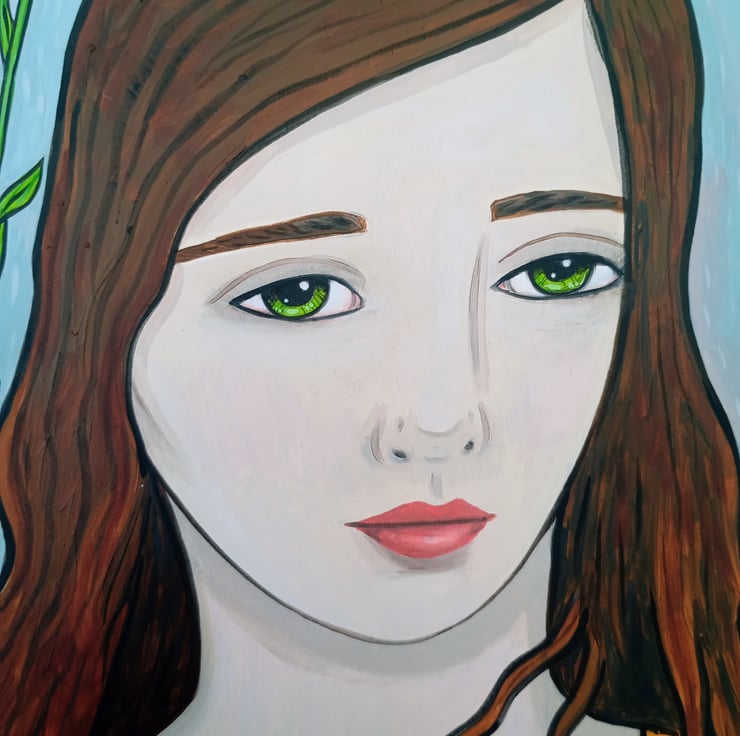 Original surreal portrait oil painting on paper.