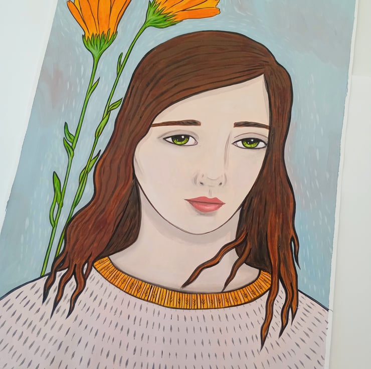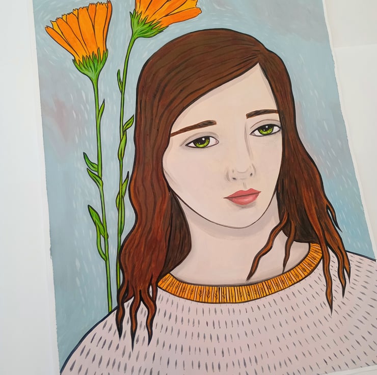 Stream-of-consciousness surrealism, inspired by Calendula and healing plants.