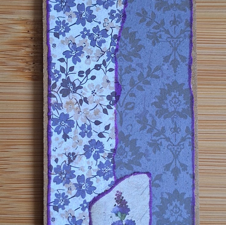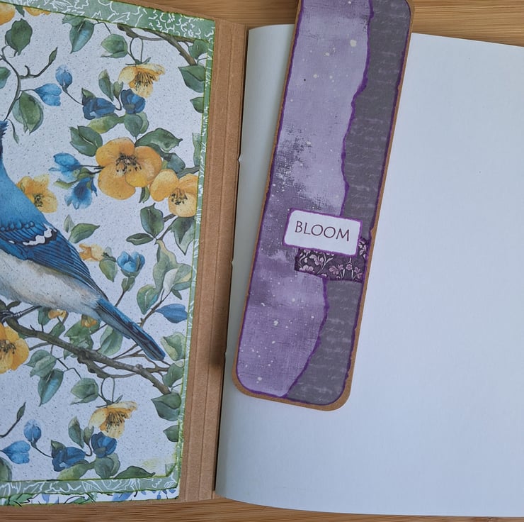 Bookmark made using kraft card, and digitally purchased and printed decorative papers. Measures 2 inches by 7 and a quarter inches (5 cm by 18.5 cm approximately). Handmade with intention, each one is unique, decorated for the season, with an inspirational word.