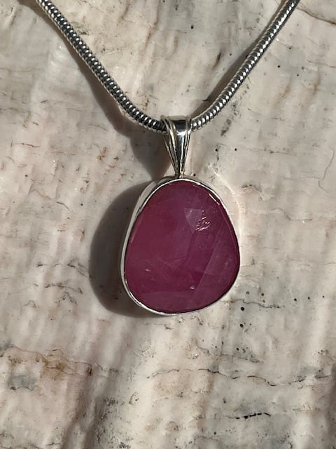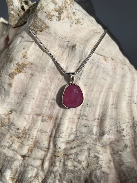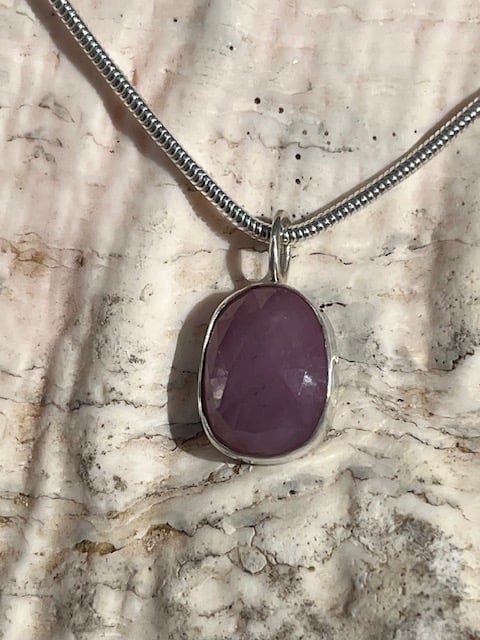 Silver pink sapphire cabochon pendant.