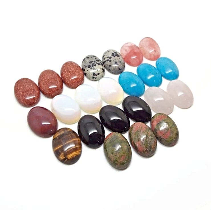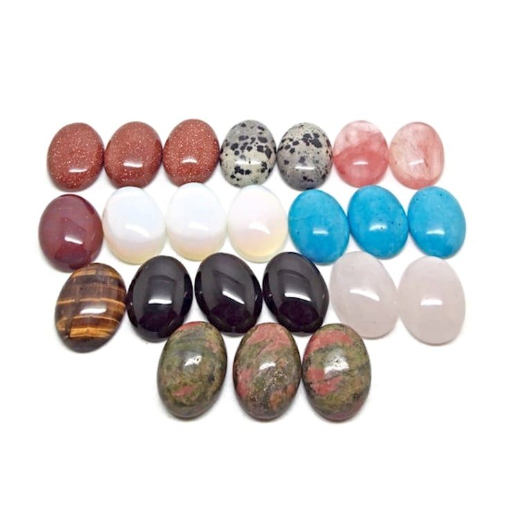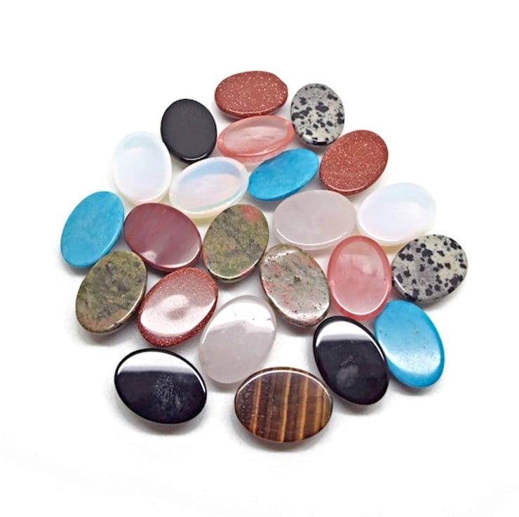 Pack of 23 Mixed Gemstone Cabochon Flatbacks. See the list below for the stones you will receive. Great pieces for Mini Wire Wrapping for Necklaces & Earrings, Beaded and Embroidered Pieces, Mixed Media Art, Polymer Clay Embedding and Brooch Making