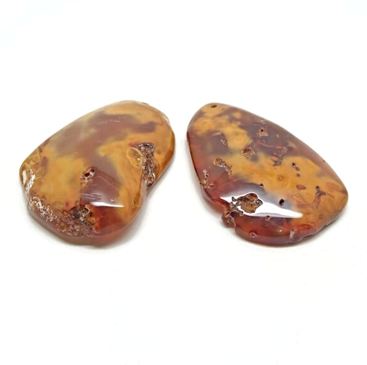 Pack of 2 Gorgeous Natural Irregular Agate Gemstone Pendants in Mixed Golden Brown, Brown and Dark Cream.