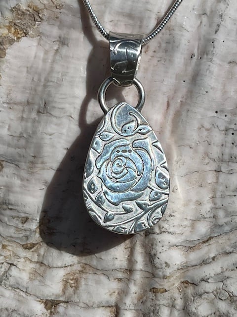 Pendant measures approximately 42 mm x 18 mm (including the bail).