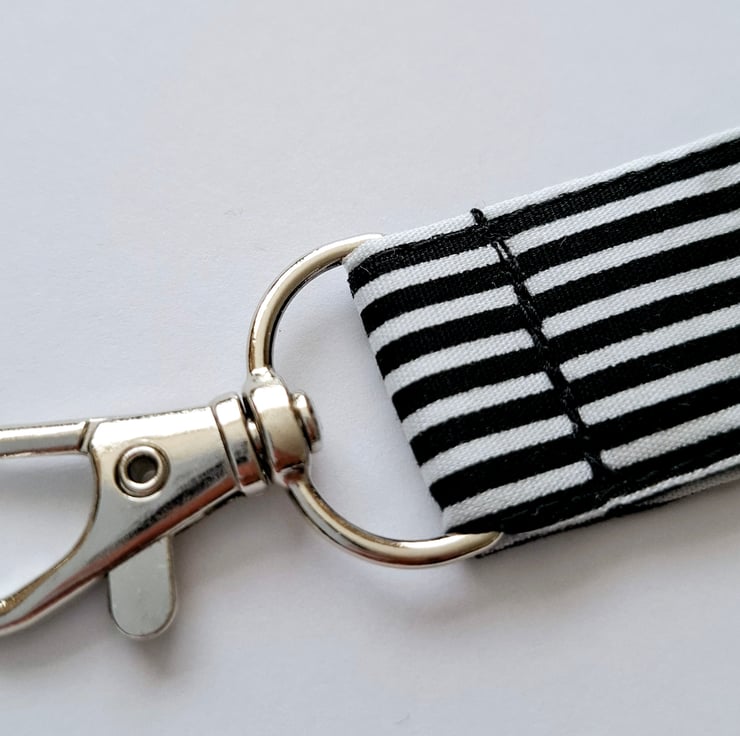 This is a cute handmade black and white micro keyring made from cotton fabric. They are small but useful. You can use them to keep important keys safe, adds a bit of personality to a bag or for bag identification. There are many uses.