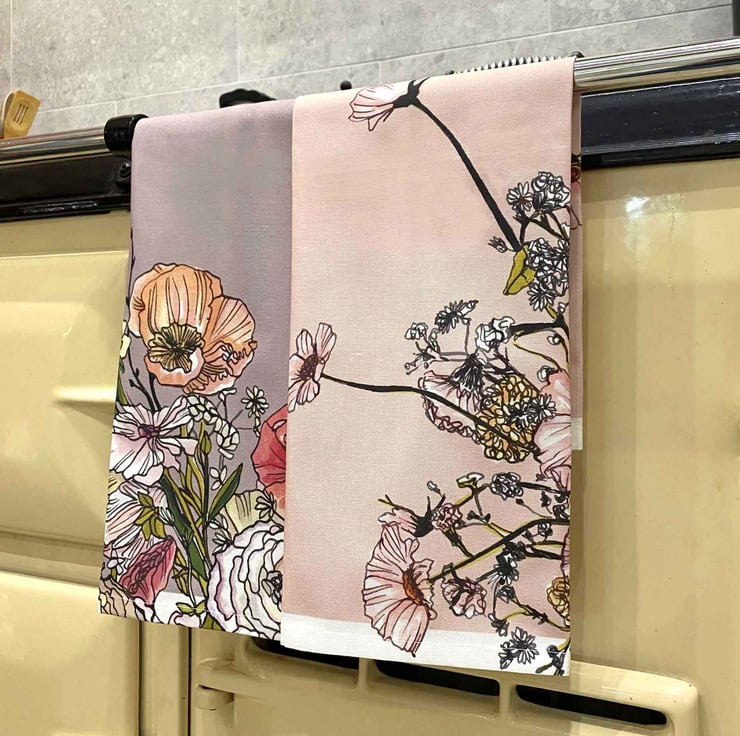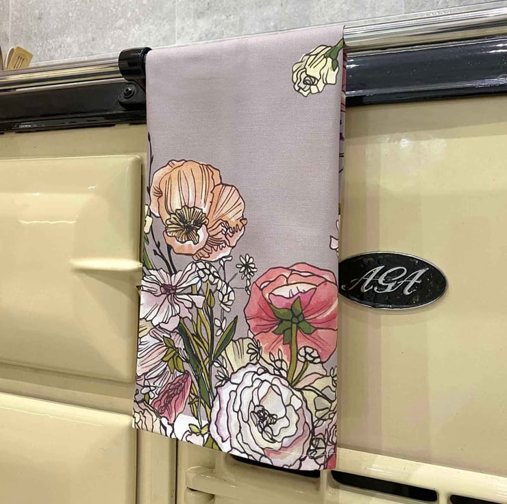 Pretty tea towel, featuring my original 'ranunculus' illustration.