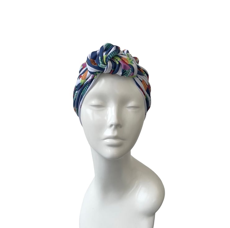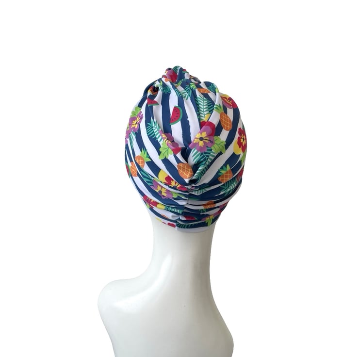 This is a soft single-layer (not lined) design UPF 50 swimwear jersey turban hat. The fabric absorbs or blocks harmful UV radiation and remains one of the most effective forms of protection against sun damage and skin cancer. Perfect for summer and beach holidays!