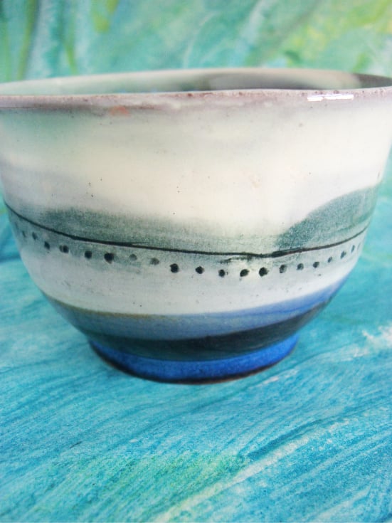 Hand Thrown ceramic bowl for the home with my design drawn onto it.