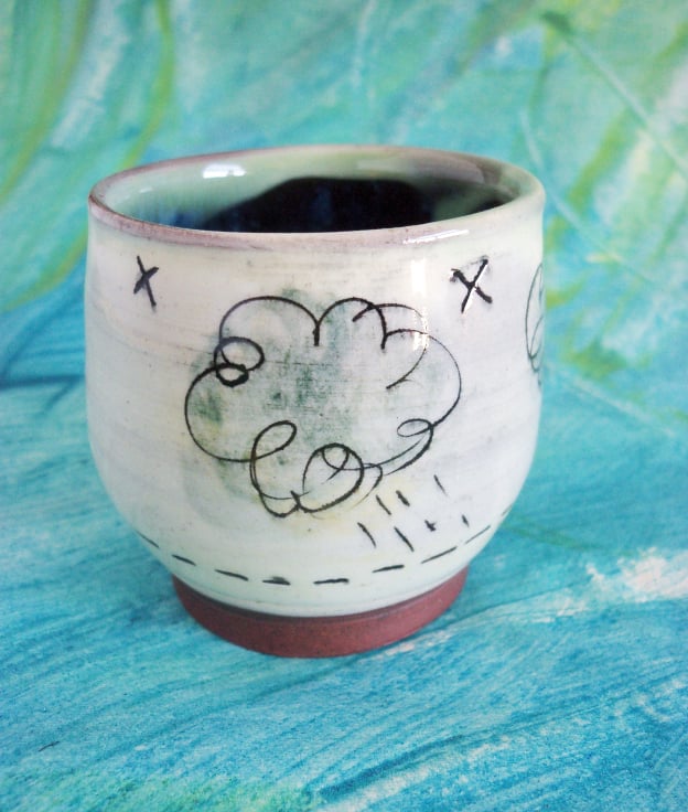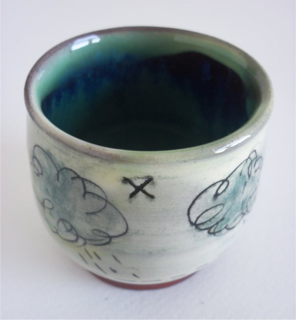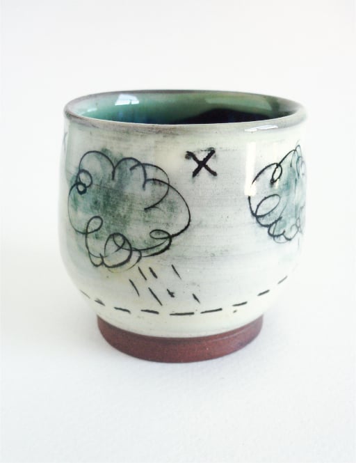 CERAMIC - Trinket Pot with rain and cloud design.