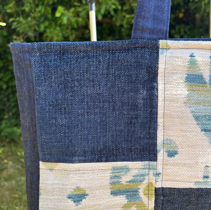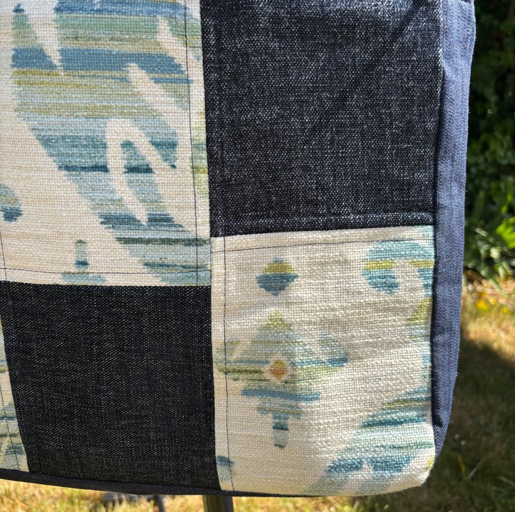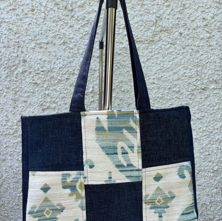 Introducing our stylish patchwork-squares tote bag, perfect for adding a splash of colour to any outfit! Crafted in soothing shades of beige and blue, this tote effortlessly blends charm with functionality. It offers plenty of space for all your daily essentials—whether you're heading to the market, work, or a day out with friends.