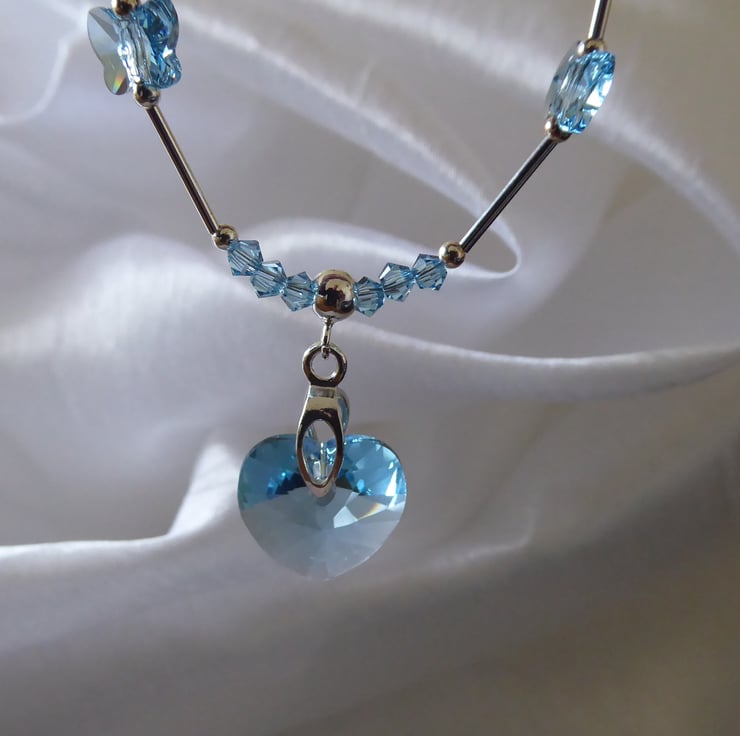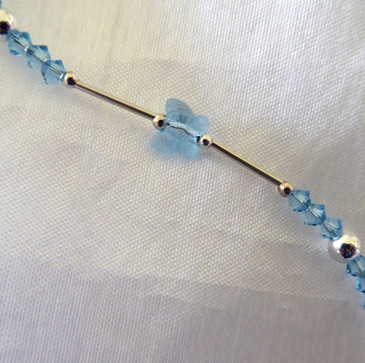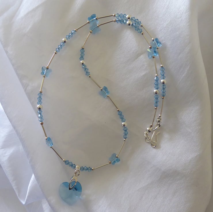 Sterling Silver and Swarovski Aquamarine Crystal Necklace with Hook & Eye Clasp