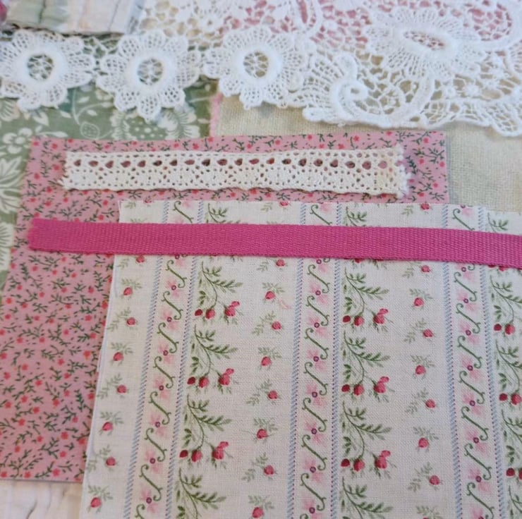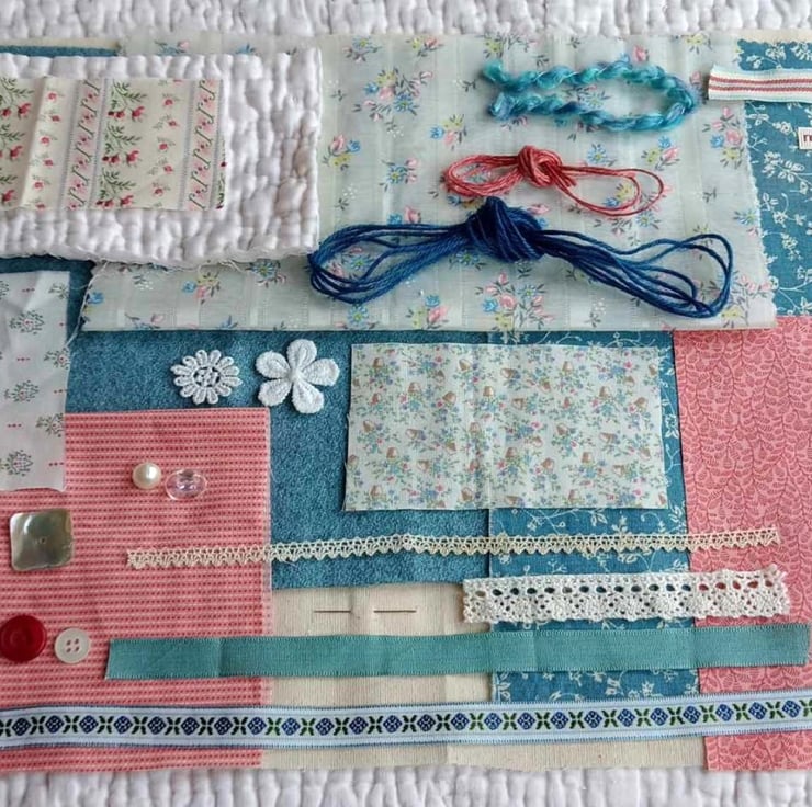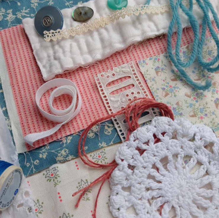 These bundles use many of the same fabrics and trims as the Slow Stitching kits I sell in my other Folksy shop (The Old Button Sews). Exact contents will vary from bundle to bundle (photos show typical examples), but they will all include: