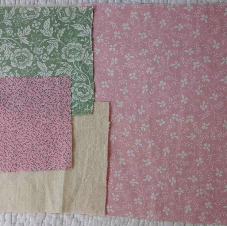 Textile inspiration bundle - vintage floral fabrics, slow stitching, textile art