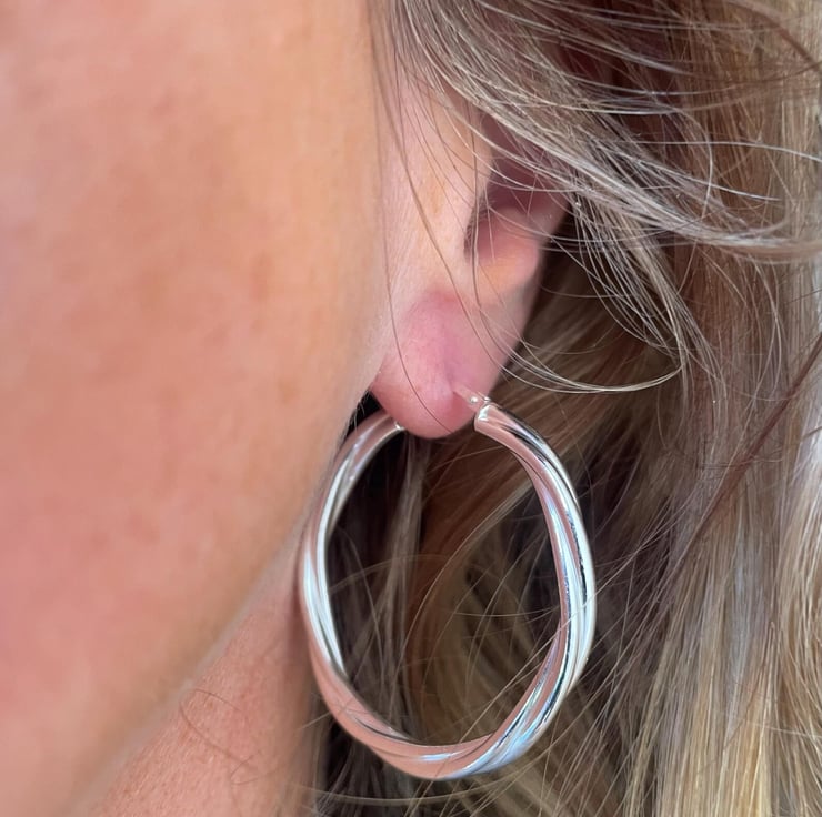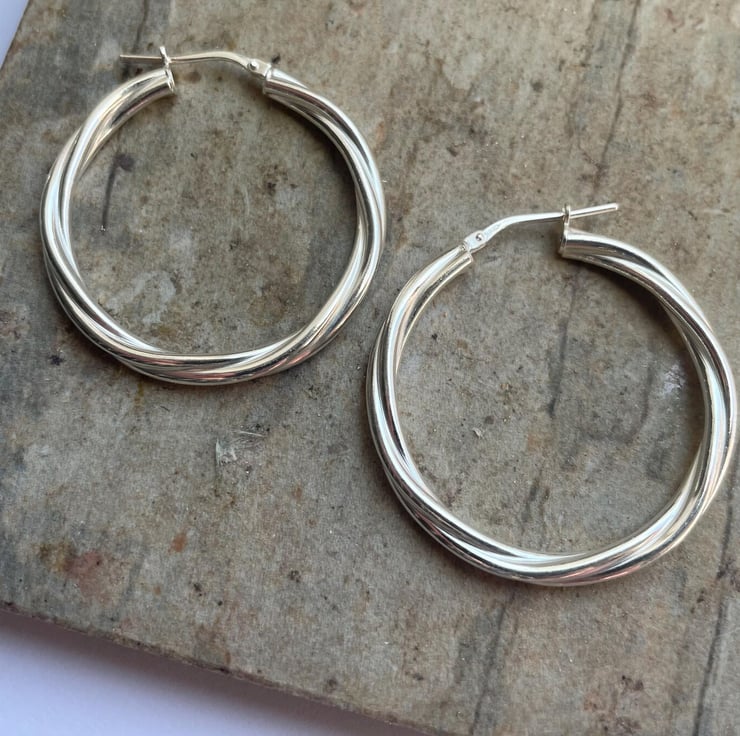 Stunning sterling silver hoops of a nice drop size of 35mm. A pretty twist design.