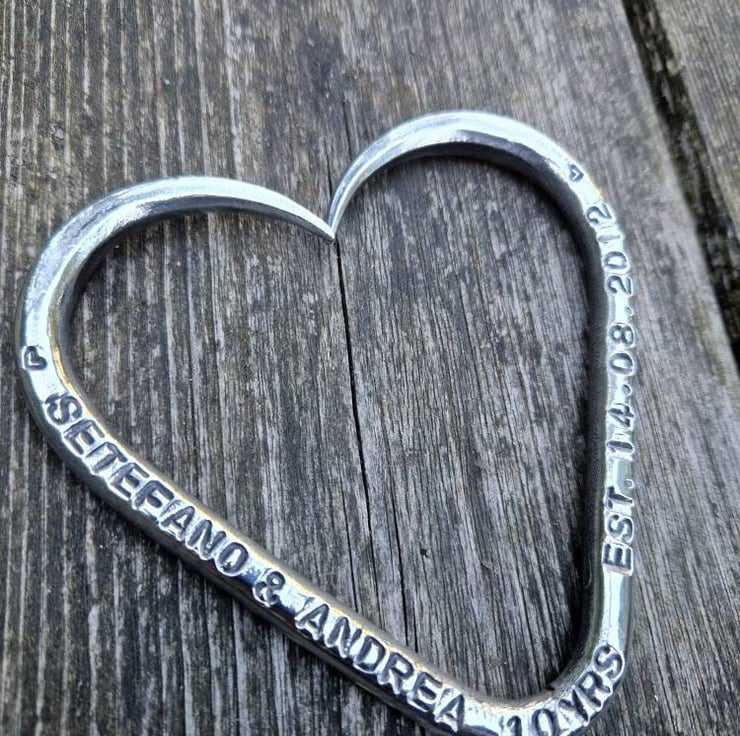 This lightweight and shiny love heart is made from Aluminum tin and hand crafted over the anvil using age old blacksmithing techniques and made of nothing more than a fire, anvil and a hammer.