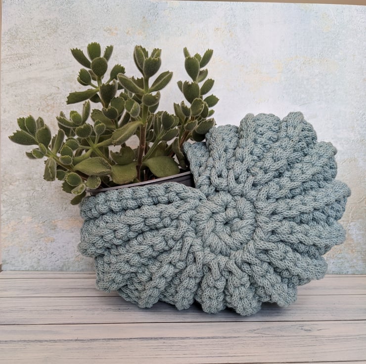 Welcome to Janiemade and my little corner of Folksy where you can buy my crocheted creations. If you're looking for skilfully handmade gifts and home decor I hope you'll find something you love. I enjoy crocheting with natural fibres, mainly cotton, and many of my home decor items use recycled braided cotton cord or recycled cotton T shirt yarn. All items are ready to post and I only charge postage on your first item. Your order will be sent by the Royal Mail Tracked 48 service.