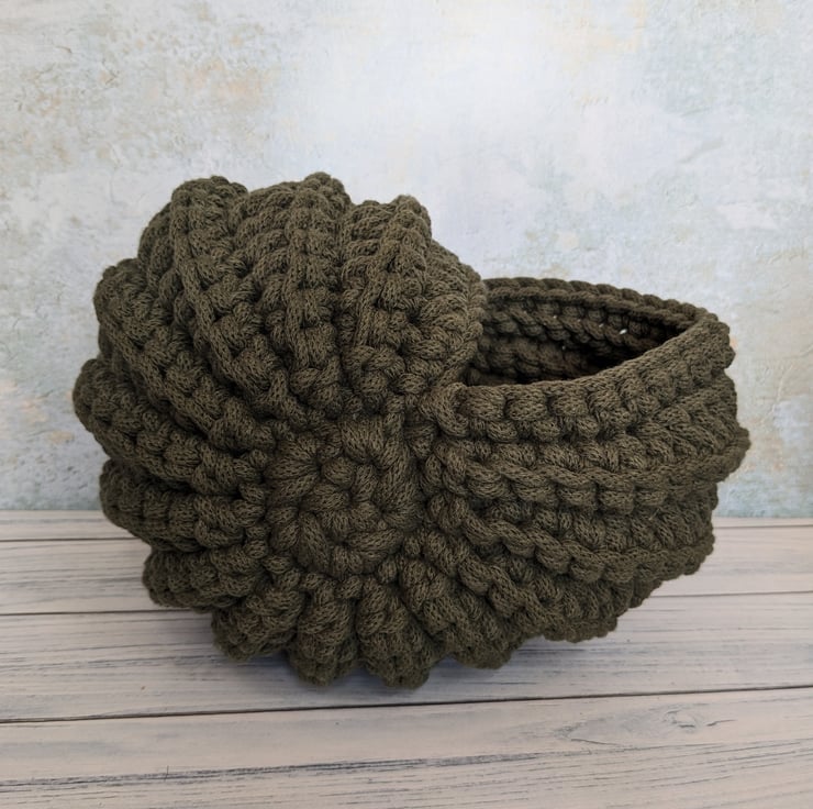 It would look equally good on display by itself as a feature in a room, or as a container for a small houseplant, or as useful storage in the bathroom or nursery. The pattern describes it as an ammonite but it is also the shape of a nautilus shell so would fit in well with a seaside theme.