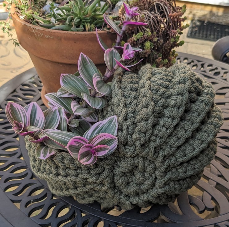 I've become a bit obsessed with crocheting with chunky macrame cord and love making shells and baskets with it. It's hard work crocheting with thick braided cord but the results are worth it. I love how you can clearly see every stitch that went into making it and it's great to make something sculptural and beautiful that's useful too!!