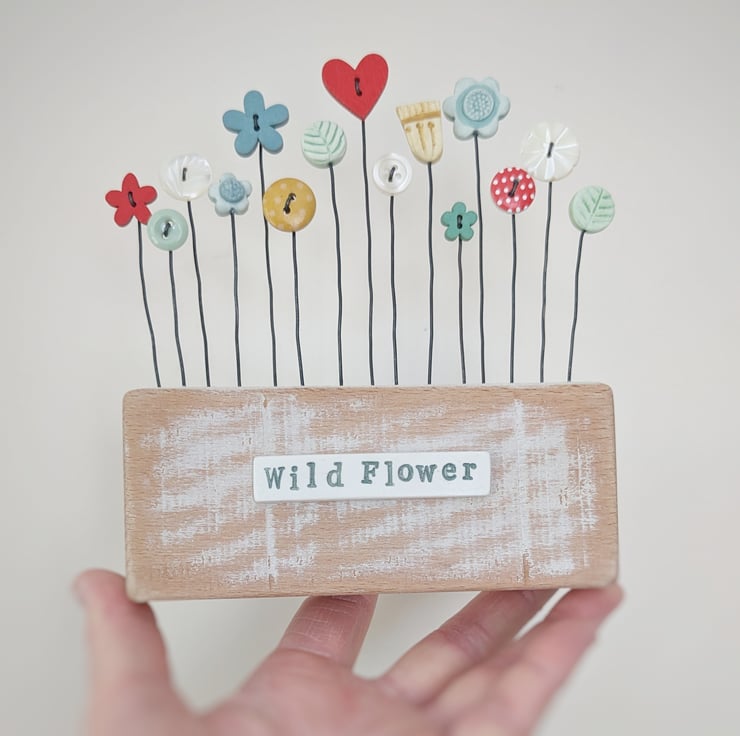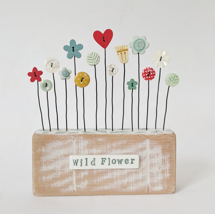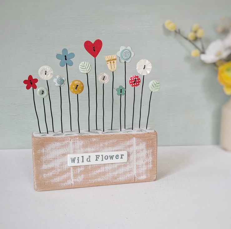 Clay and Button Flower Garden in Wood Block 'Wild Flower'
