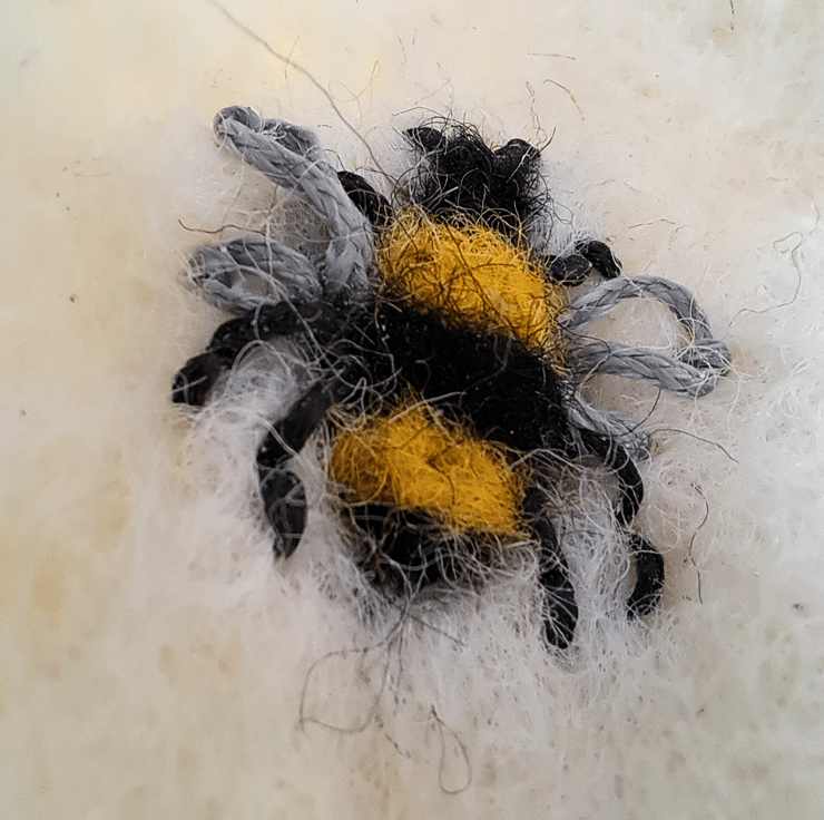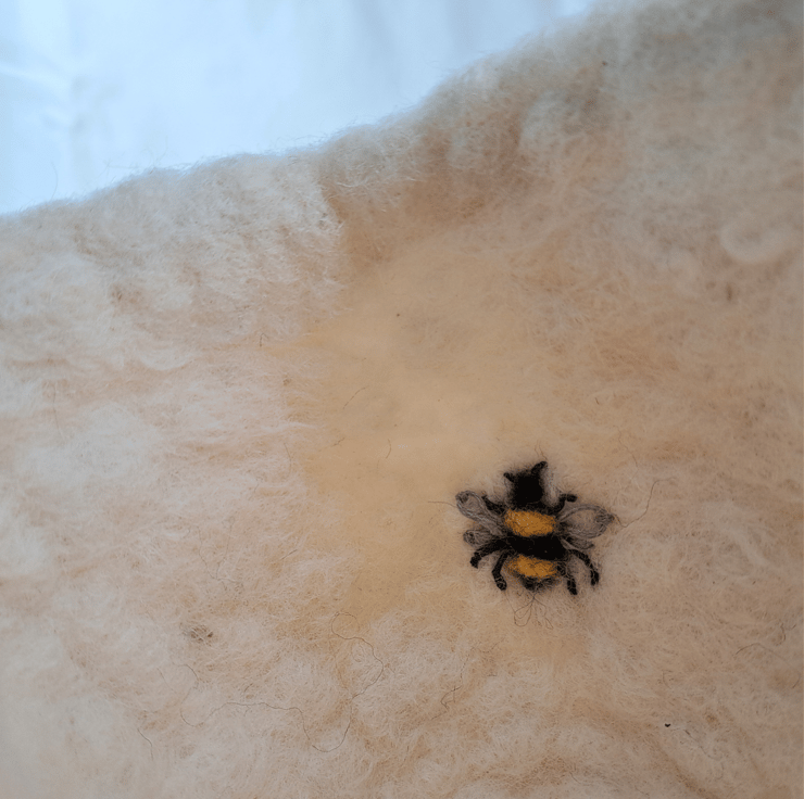 Look closely and you'll spot a sweet surprise: a hidden bee design stitched in by hand! The soft, creamy wool shows off natural curls left from the fleece, giving it a beautiful texture and rustic feel.