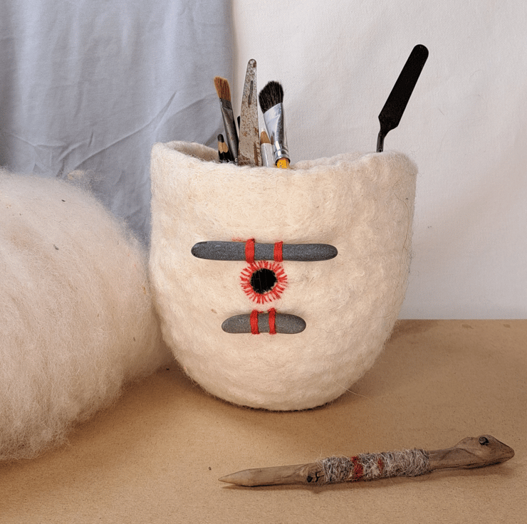 Bring a little warmth and charm to your space with this unique wool pot, handmade in the West Midlands using 100% British wool. Each bowl is crafted by hand using traditional wet-felting techniques, rainwater, and gentle olive soap, no harsh chemicals, just nature and care.