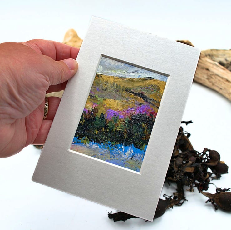 - This is an original, one-off painting at 3.5 x 2.5 inches. The total size including the mount is, 6 x 4 inches (15 x 10 cms).