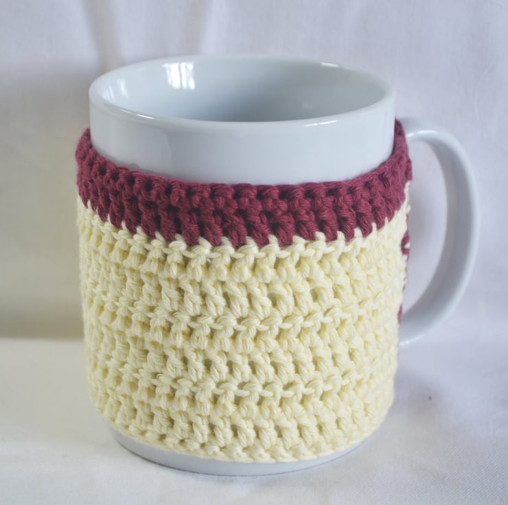 Crochet Mug Cosy Mug Wrap Mug Hug Maroon Yellow 100% Cotton Hygge OOAK Ver. 30