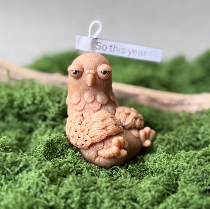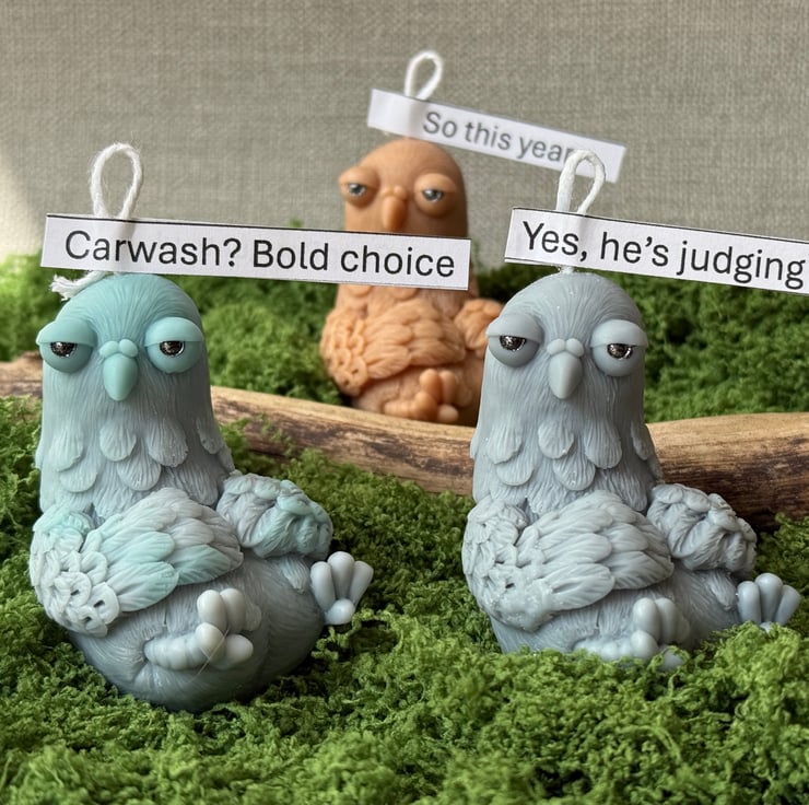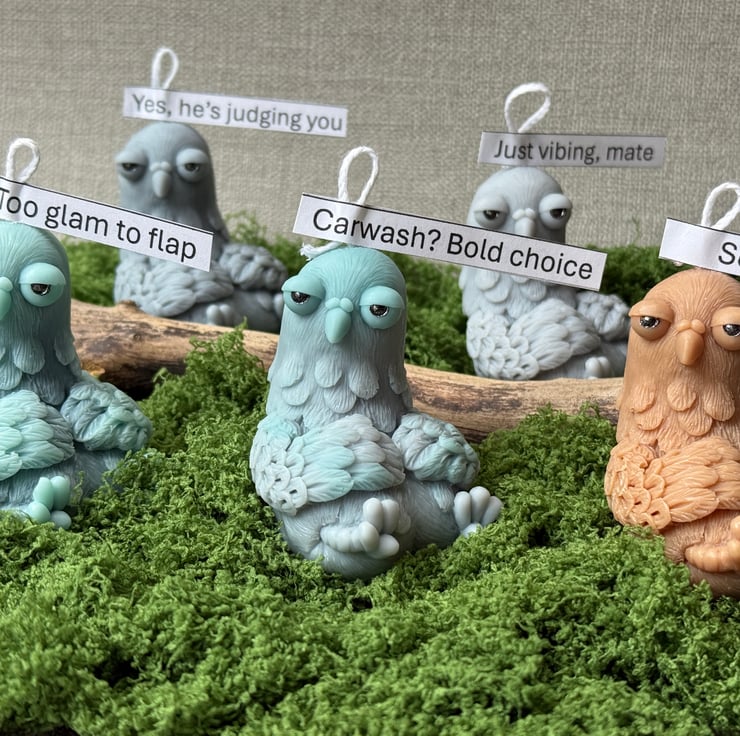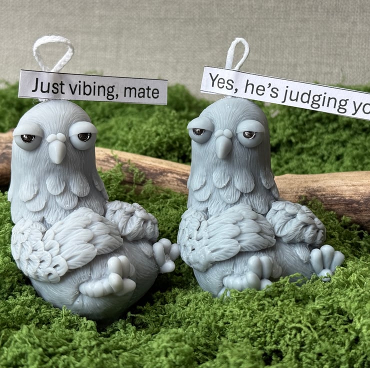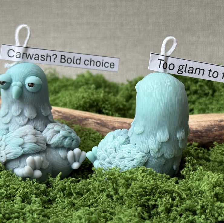 Add some character (and a good laugh) to someone’s day with this handcrafted pigeon candle – the perfect blend of sarcastic wit and stylish desk decor.
