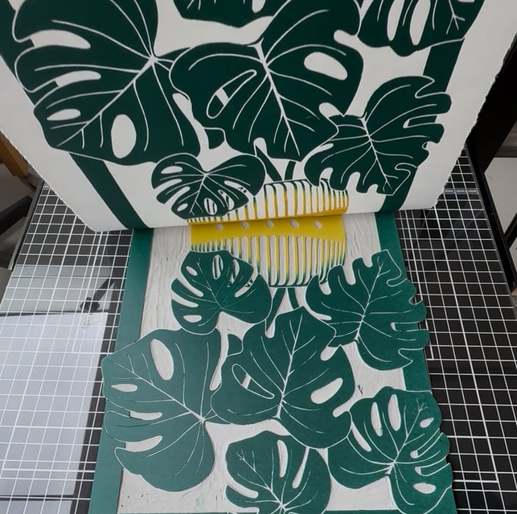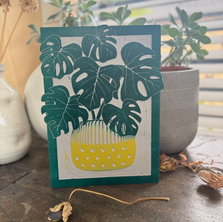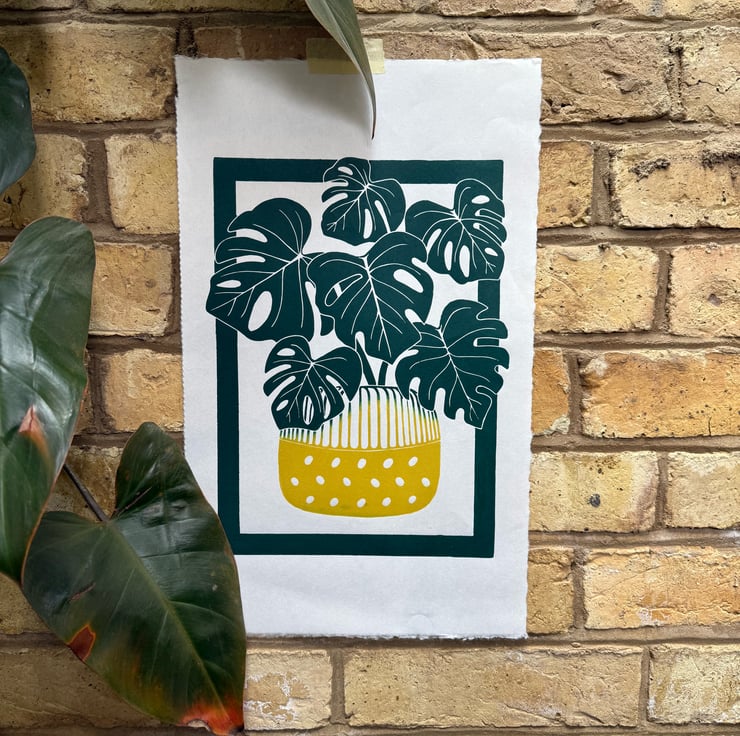 This is my beautiful potted monstera open edition print. Designed, hand carved in lino and printed by me.