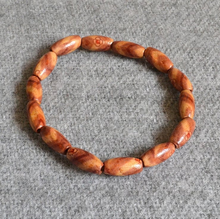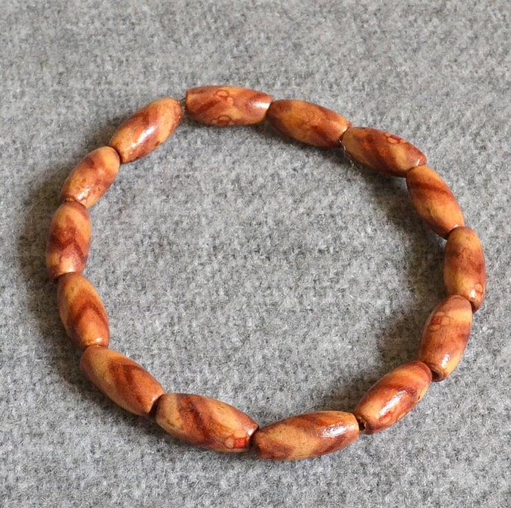 Lightweight and easy to wear. These pretty bracelets with their printed irregular swirl pattern, complement any casual outfit. The bracelet is strung on jewellery elastic for a roll over the wrist fit, and has an approximate unstretched length of 20.5cm, or 8 inches.