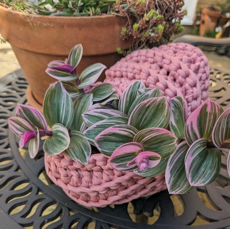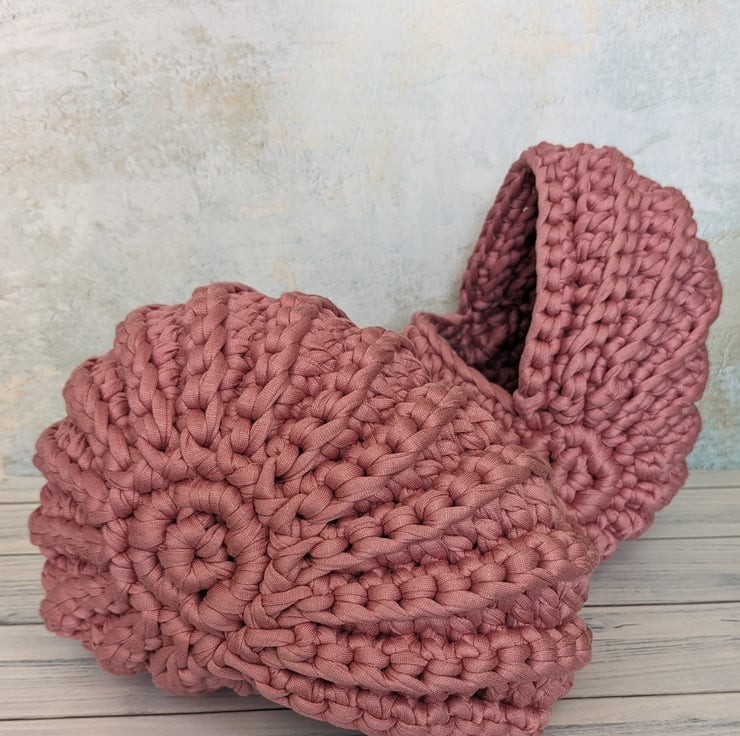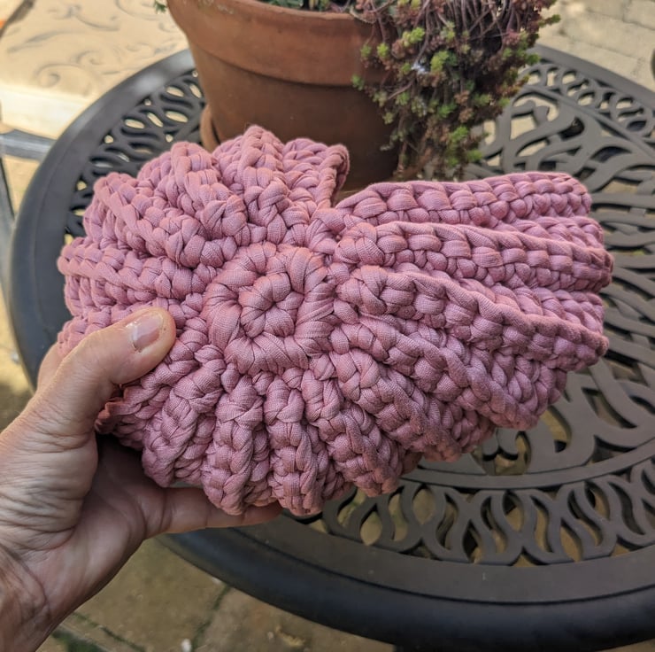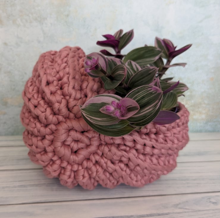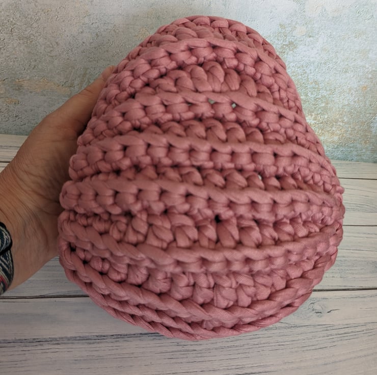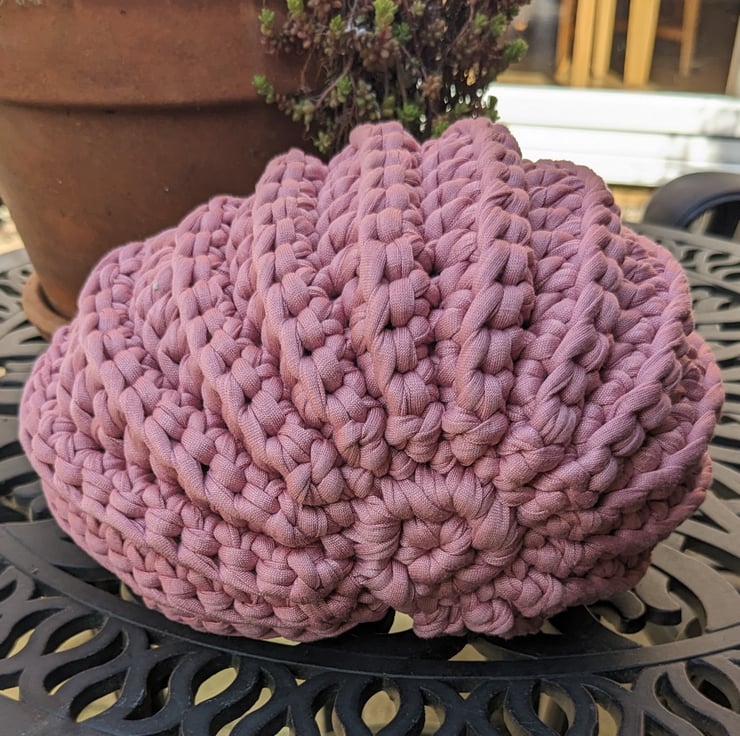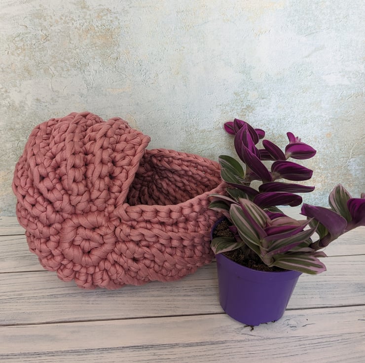 T-shirt yarn is lovely to work with, a bit easier to crochet than macrame cord as its more flexible. It's perfect for making smaller baskets and bowls and comes in a great range of colours.