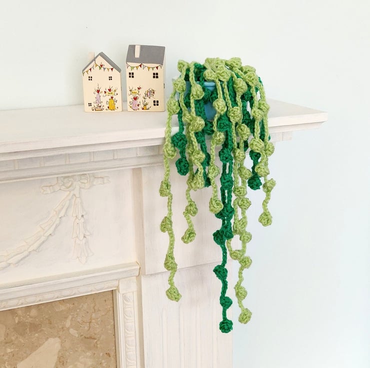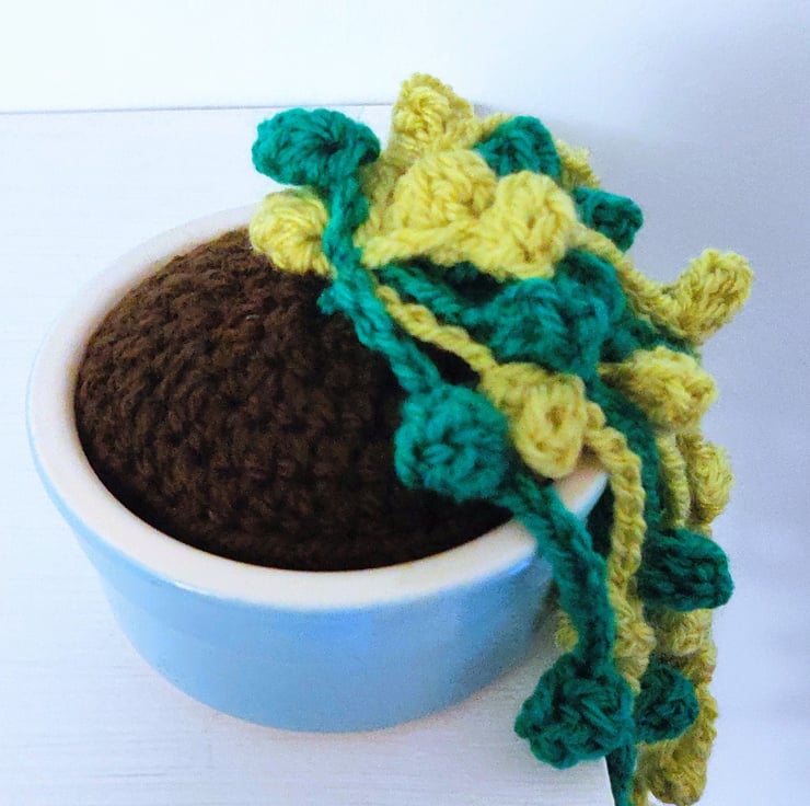 Crochet String of Pearl Plant, Crochet Artificial Plant, Dark Green House Plant,