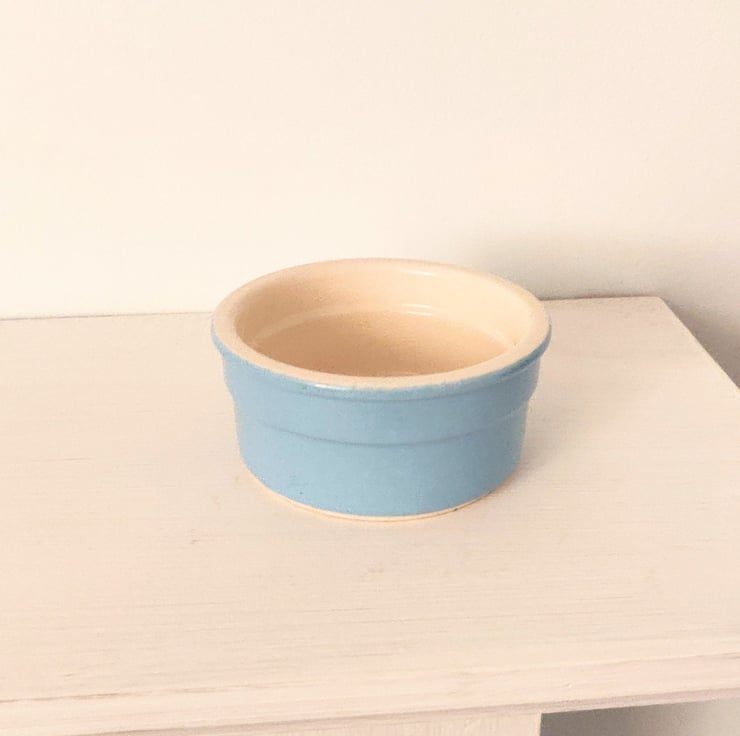 This beautiful string of pearls trailing plant is an ideal addition to your home. It has been beautifully crocheted with crocheted soil within a light blue ceramic pot.