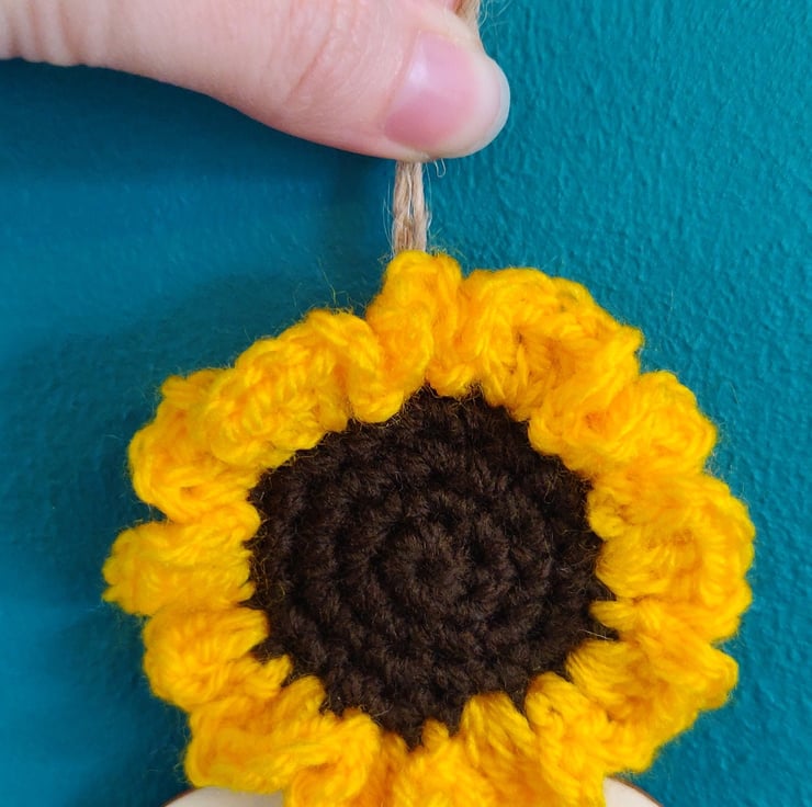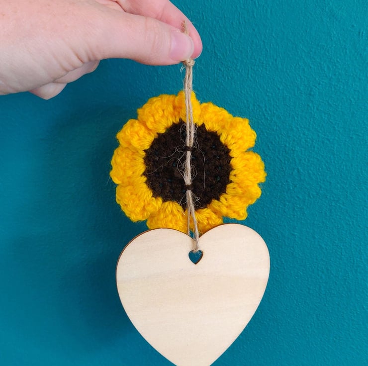 I have also crocheted a sunflower which sits on top of the wooden heart.