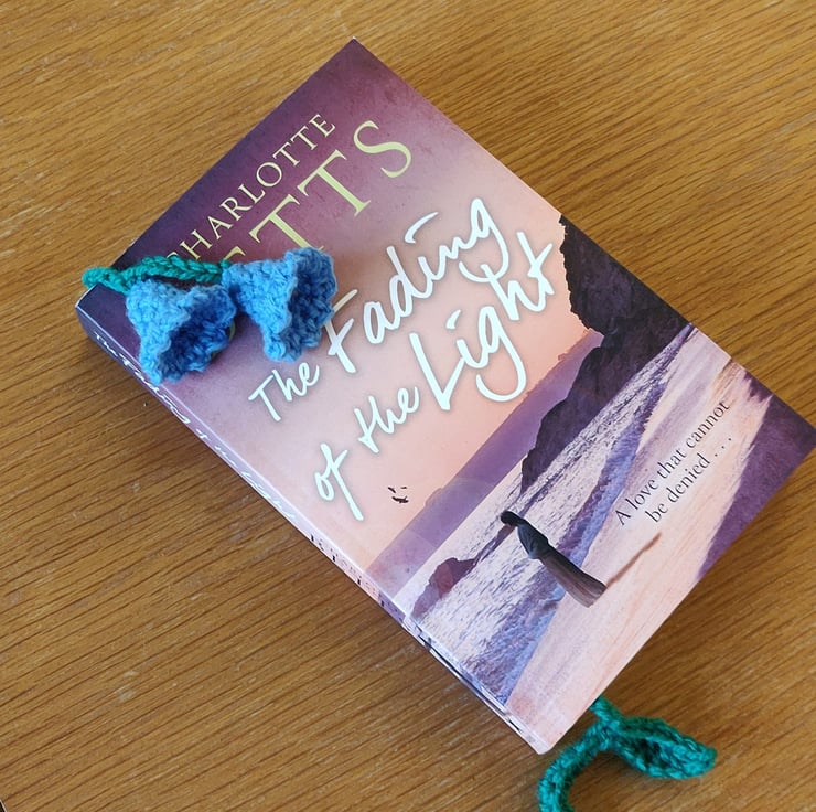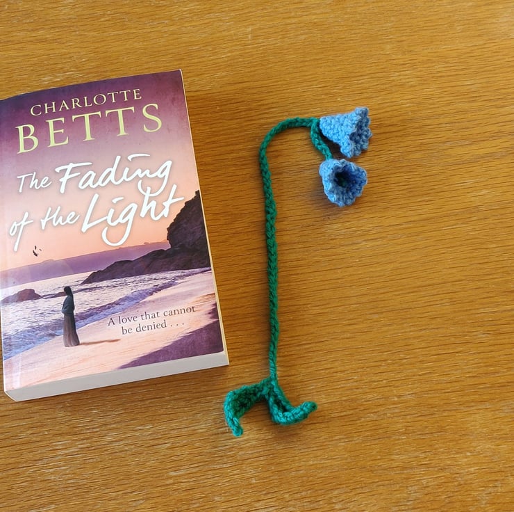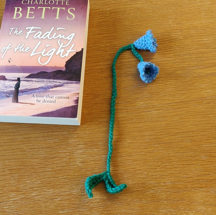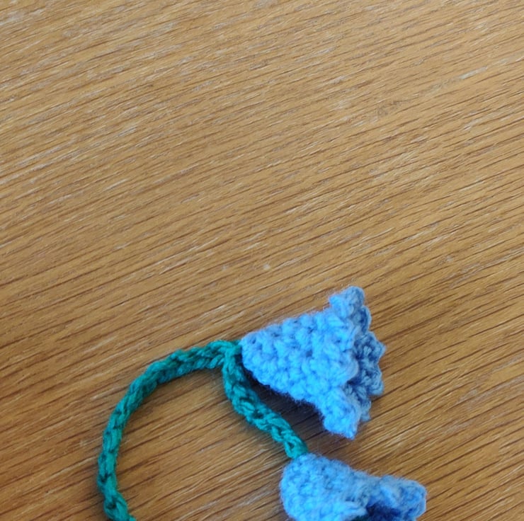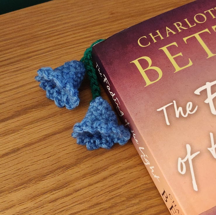 This beautiful bluebell bookmark has been crocheted to fit standard paperback or hardback books.