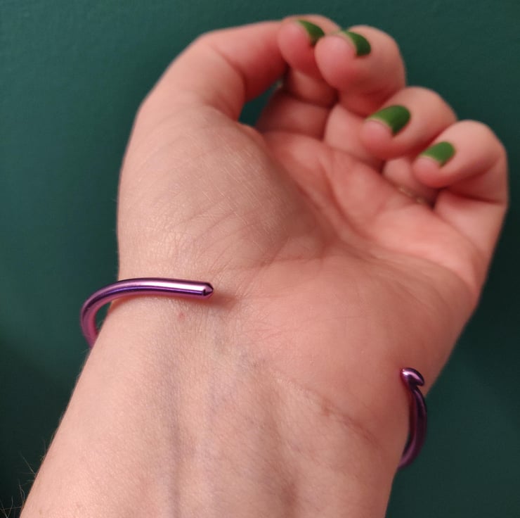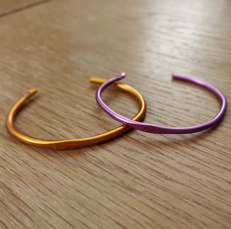 These bangle bracelets have been handmade from recycled crochet hooks.
