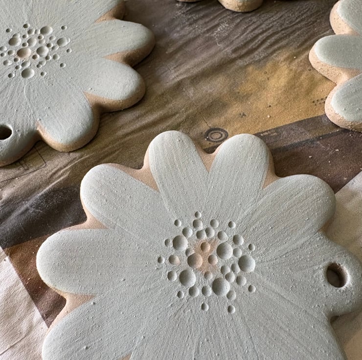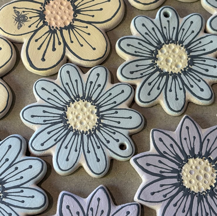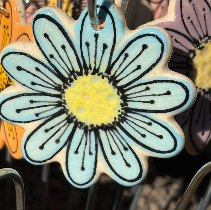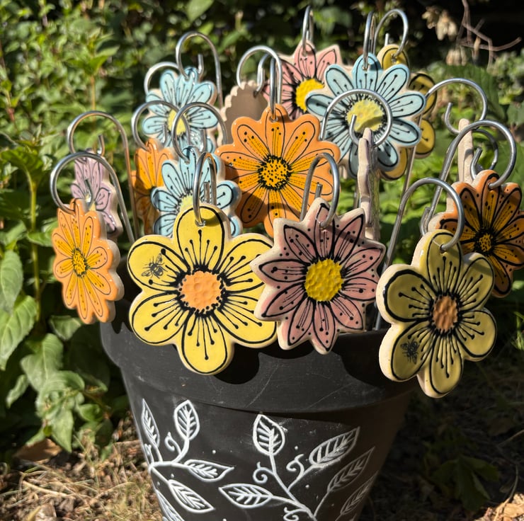 Brighten up your outdoor or indoor space with these handmade ceramic flower stakes!