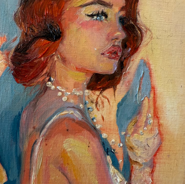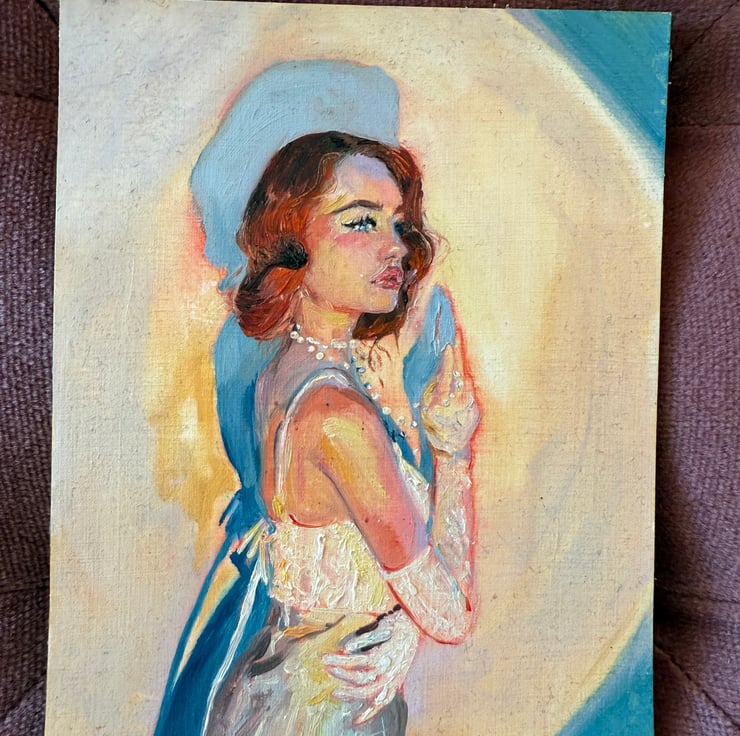 1930s art, vintage woman painting, retro wall decor, classic portrait, feminine oil artwork