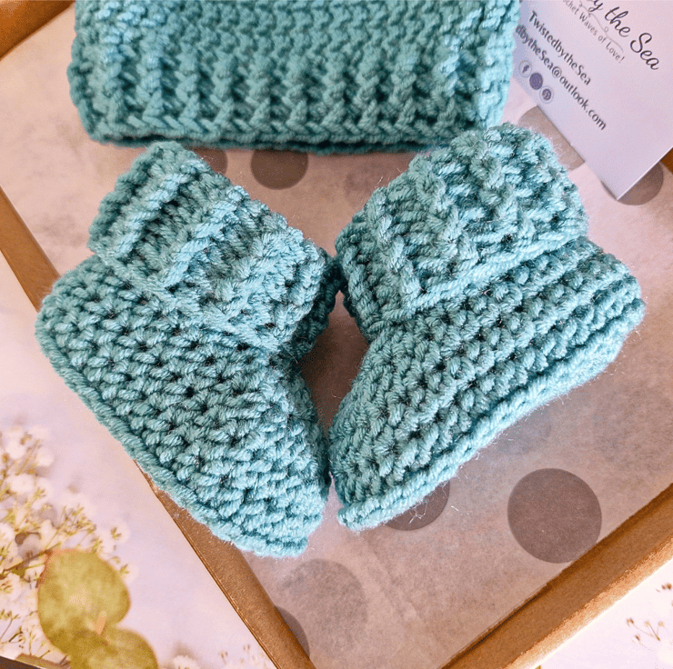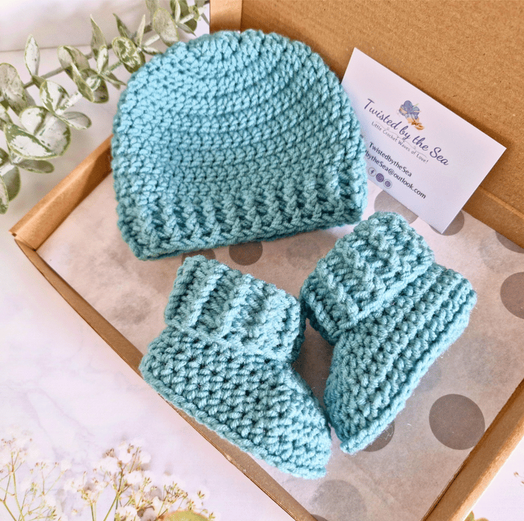 Welcome to Twisted by the Sea – home of beautifully handmade crochet baby gifts including baby booties, hats and cardigans. Each item is thoughtfully crafted using soft Stylecraft Special DK yarn, perfect for new arrivals, baby showers, and keepsake gifts. All made from my coastal home in Lincolnshire.