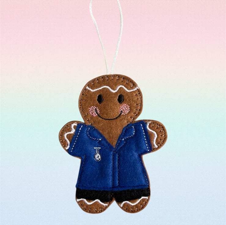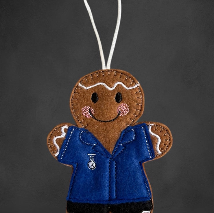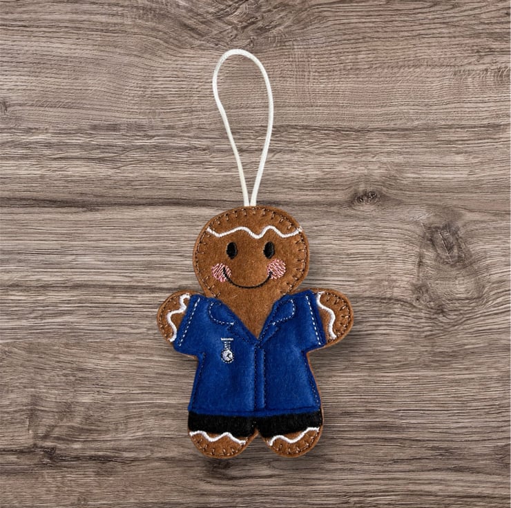 Male nurse or carer gingerbread man Embroidered Hanging Keepsake
