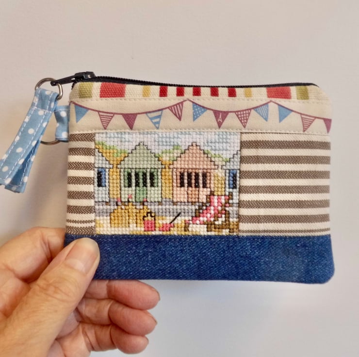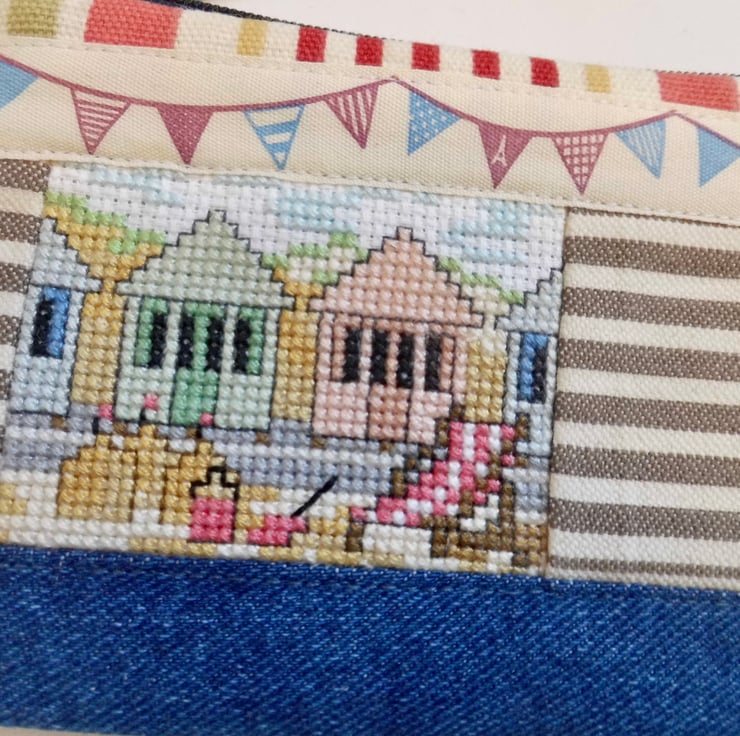I cannot take credit for the cute cross stitch on this purse. It was part of a collage which my sister-in-law spotted in a charity shop whilst we were on holiday near Southwold, Suffolk and I thought it would be nice to give this little beach scene a new lease of life.