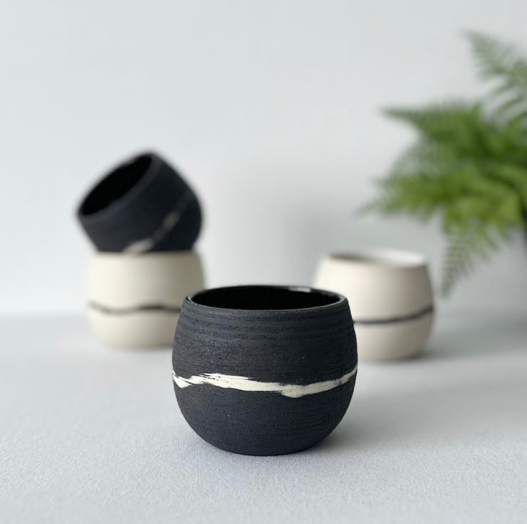 Savour your coffee in this handcrafted ceramic cup, featuring a sleek stripe that complements any modern kitchen aesthetic. Each cup is meticulously shaped by hand in London, ensuring a unique touch to your coffee experience. The minimalist design not only offers visual appeal but also provides a comfortable grip for daily use.