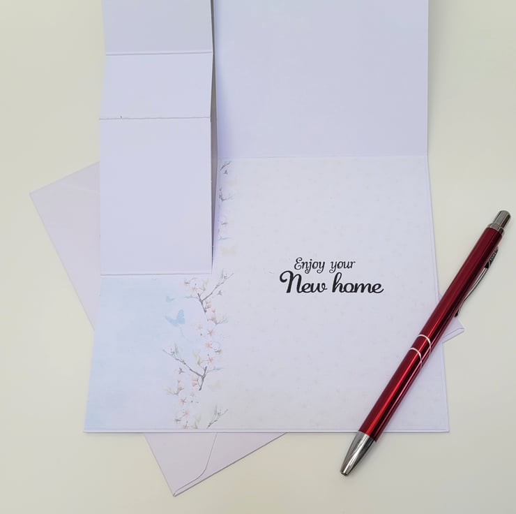 A lovely shaped card in pastel colour tones to send New Home Congratulations.