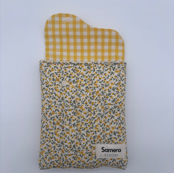 The quilted eReader Pouch is a must-have accessory for any Kindle/eReader lover. It features our signature saddle flap design and cream cotton lining.