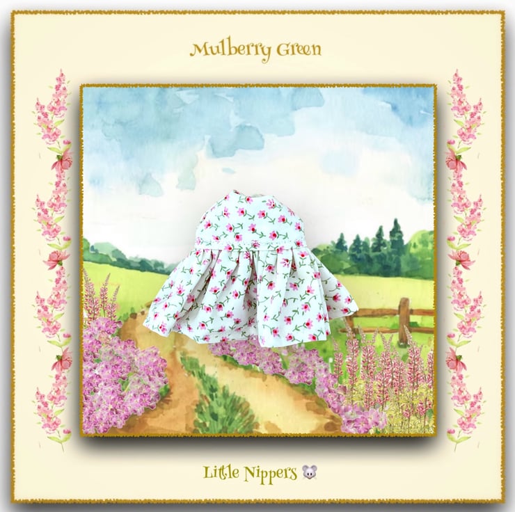 A cute little ivory dress, in a ditsy print, made especially to fit the Little Nippers. The dress fastens at the back with a little popper.