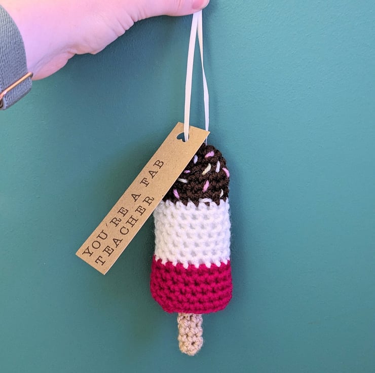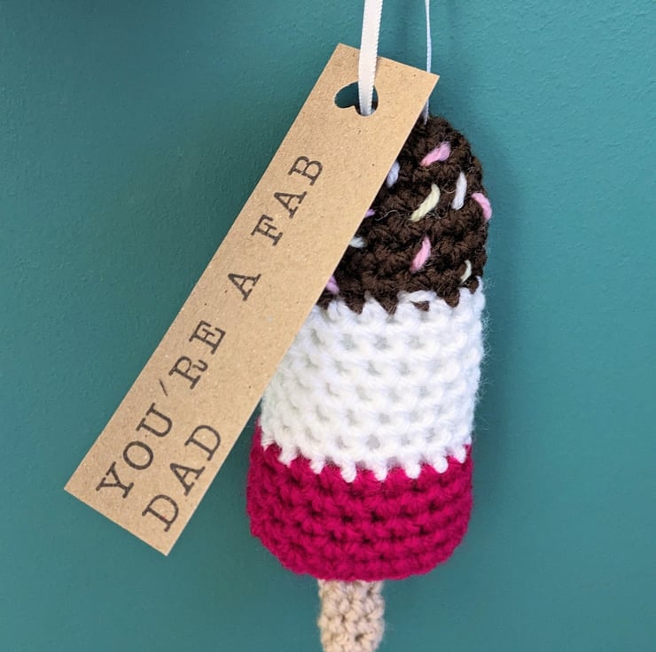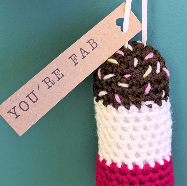 This crochet fab ice lolly makes a fun gift for anyone who needs to know they're fab!