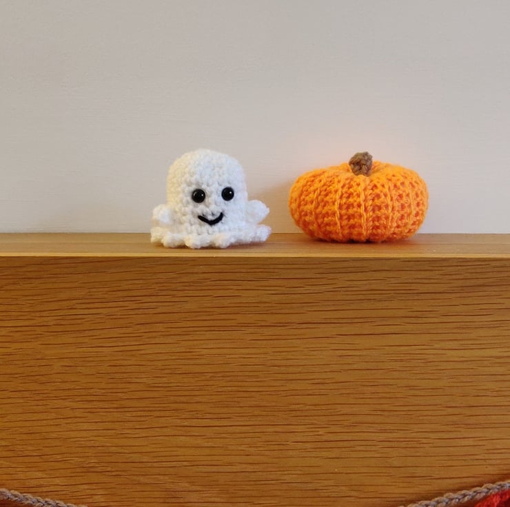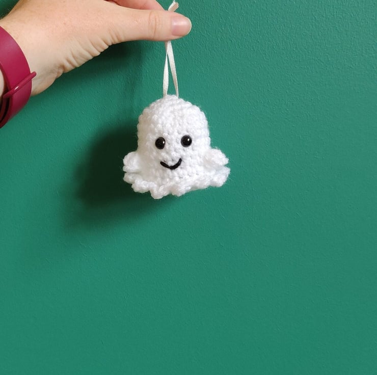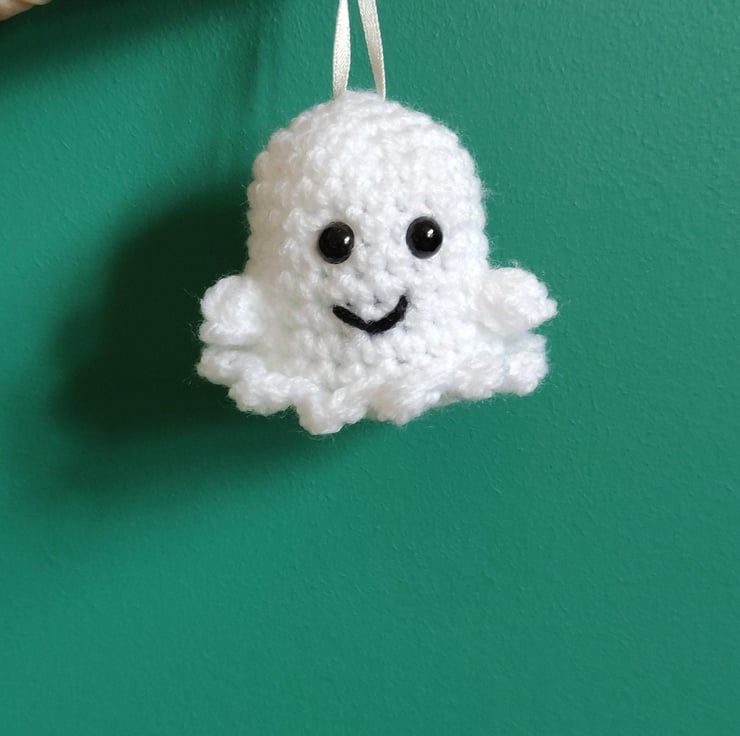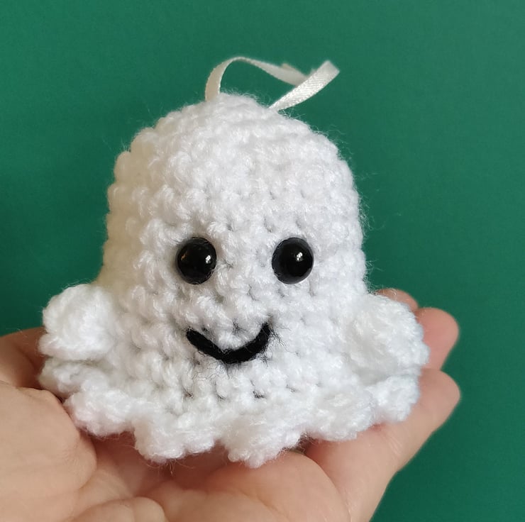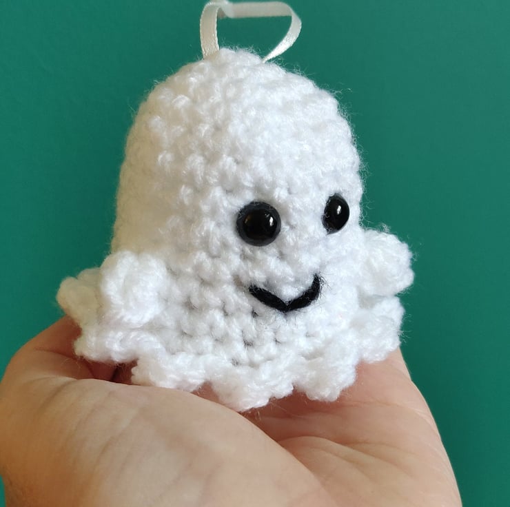 This mini crochet ghost makes a cute and unique Halloween decoration.