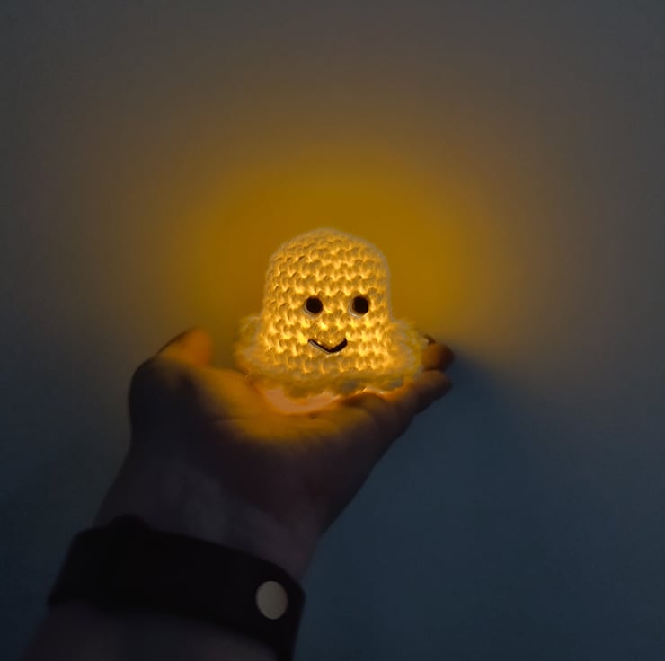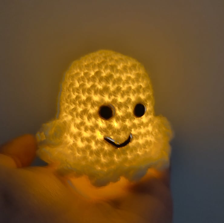 The ghost is large enough to have an artificial tea-light underneath to light it up. (Tea light not included)