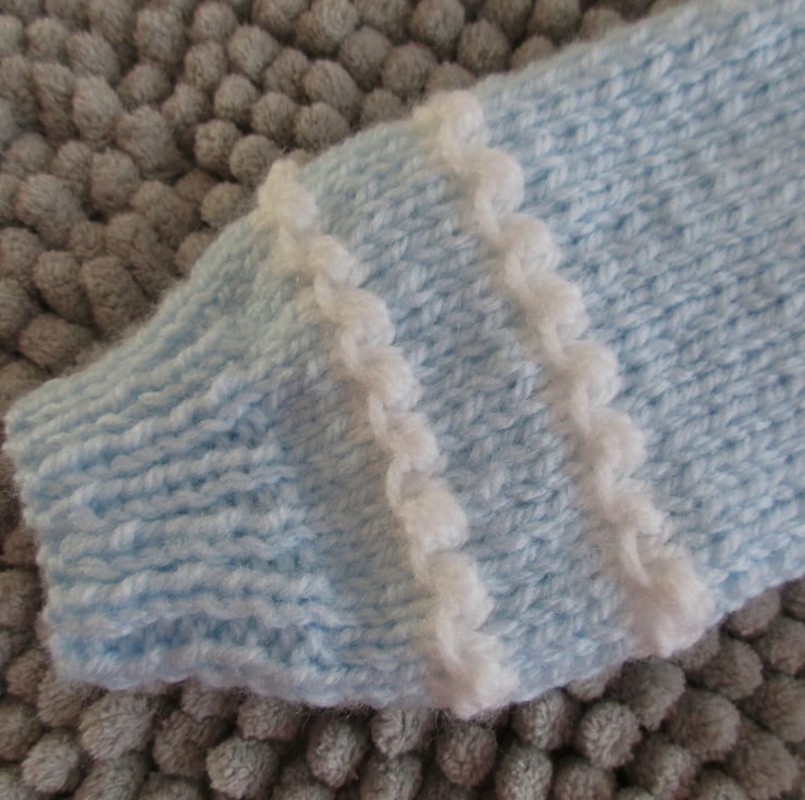 Baby Blue Stocking Stitch with White Patterned Bands Round Body and Sleeves